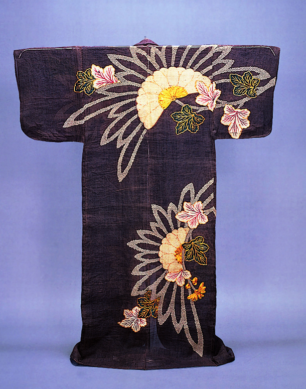 Copyright: Katabira (Summer kimono) with Chrysanthemums and Fan Palm Leaves.