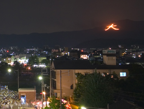The Daimonji festival (Gozan-no-okuribi) on the 16th of August is the culmination of the major summer holiday in Japan: Obon, a Buddhist custom during which the family gather together to commemorate their deceased ancestors.
