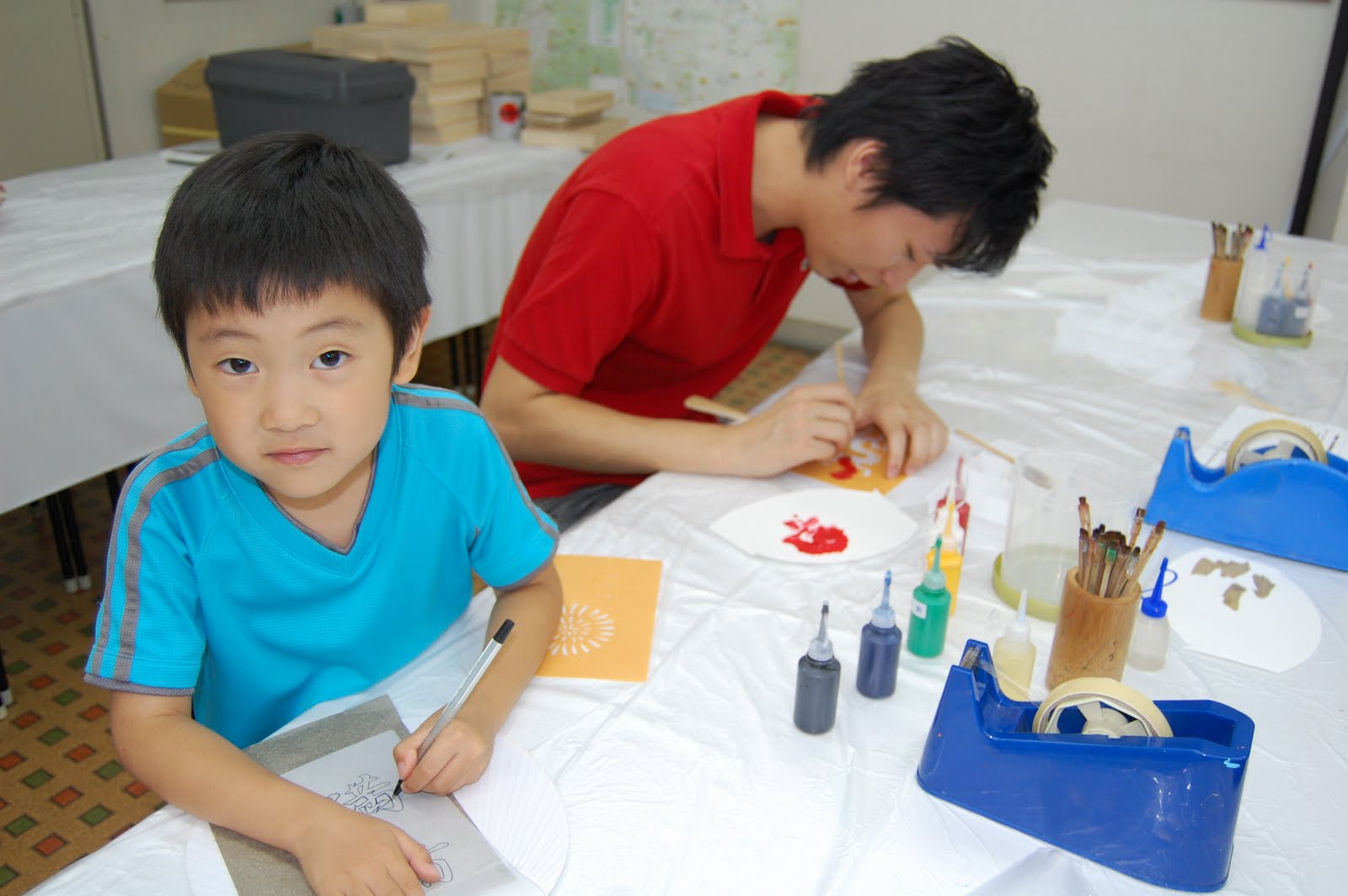 The boys enjoyed painting on their uchiwa (Japanese fan) with dragon motif and their kanji name. The younger was so exciting to make his own uchiwa.